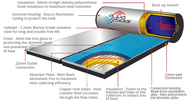 AquaSolarâ„¢ solar water heating systems uses the latest developments in solar technology to produce high quality, efficient water heaters for residential and commercial use. Thorough the years of experience, we understanding more of home owners' needs and that result in the product's functionality and efficiency. The products are designed and engineered to fully optimize the sun's power in warming up water without shooting up the costs - it's the perfect balance of technology and nature!